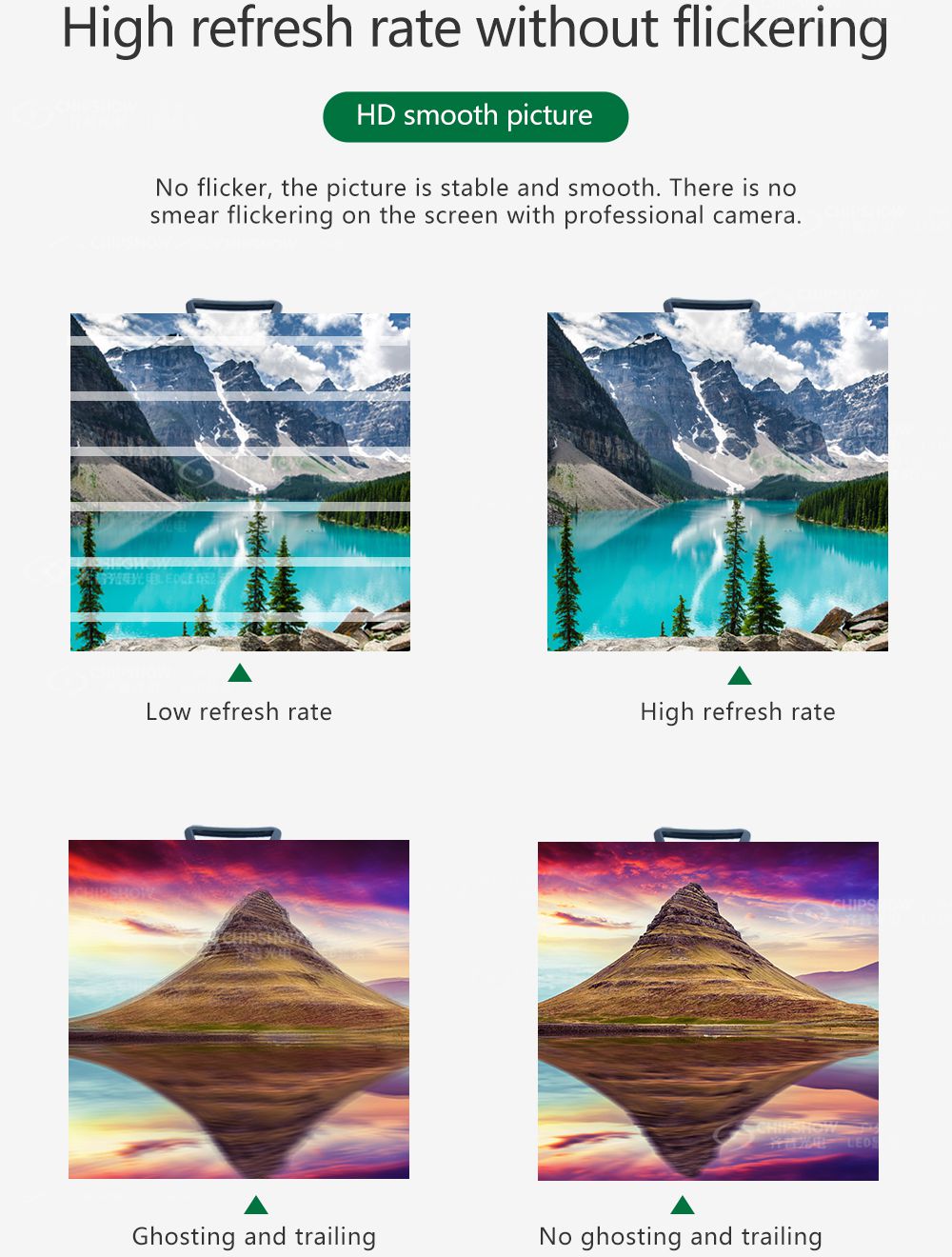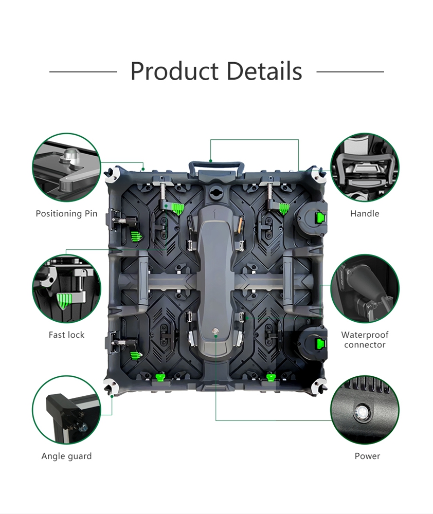 4 Seu ângulo de visão ultra-amplo (H160°/V140°) garante que o público em diferentes lados possa visualizar claramente as imagens exibidas;