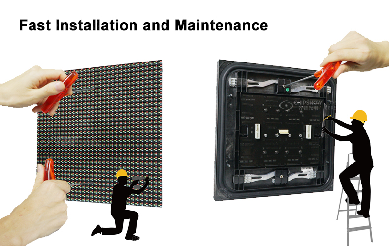 C-Easy P5, P6.67, P8, P10, P16 é um módulo LED substituível à prova d'água para ambientes externos, com manutenção frontal e traseira, com economia de energia.