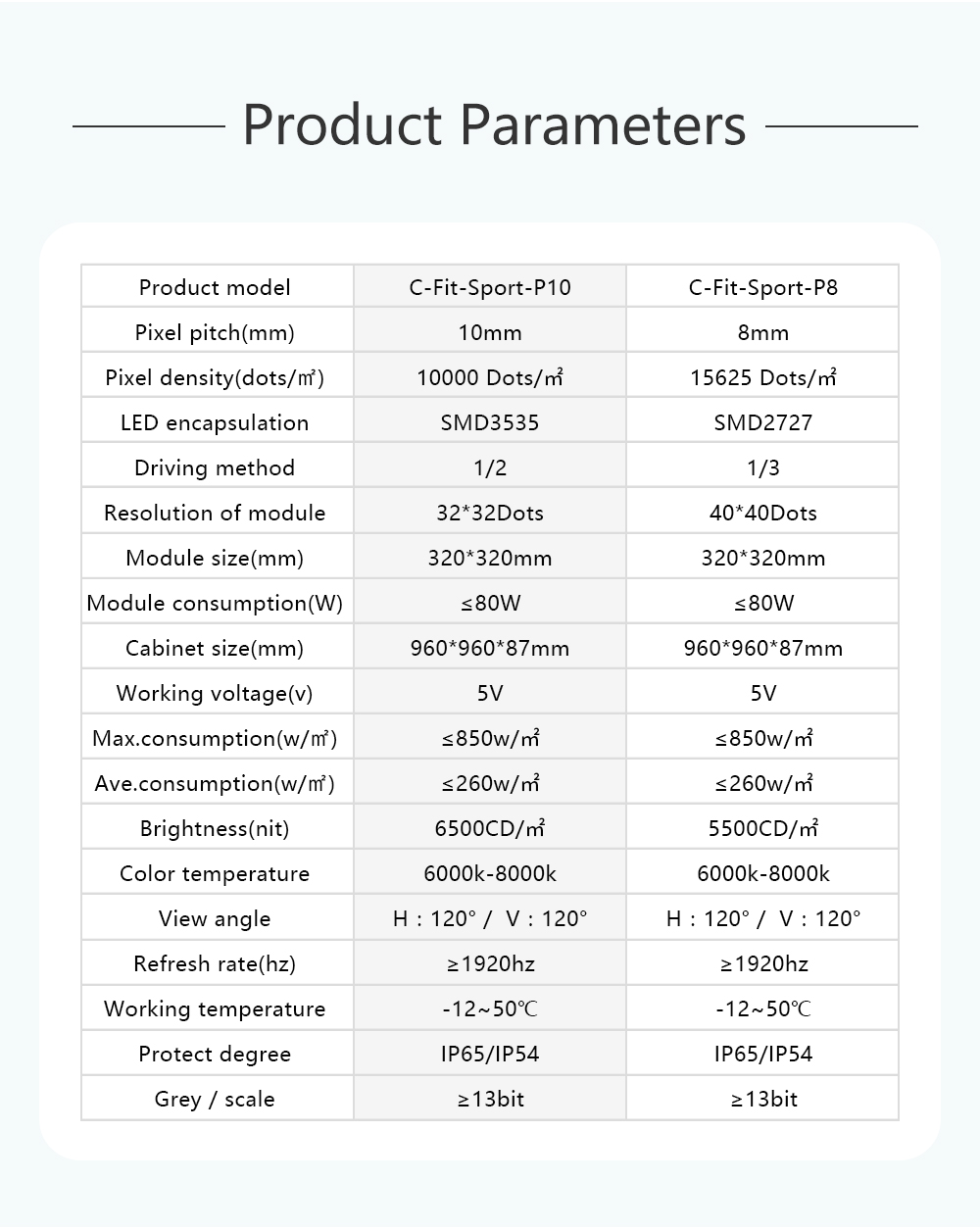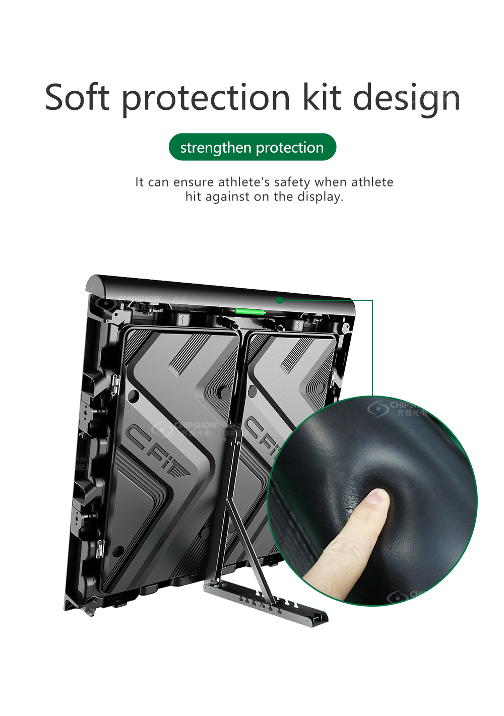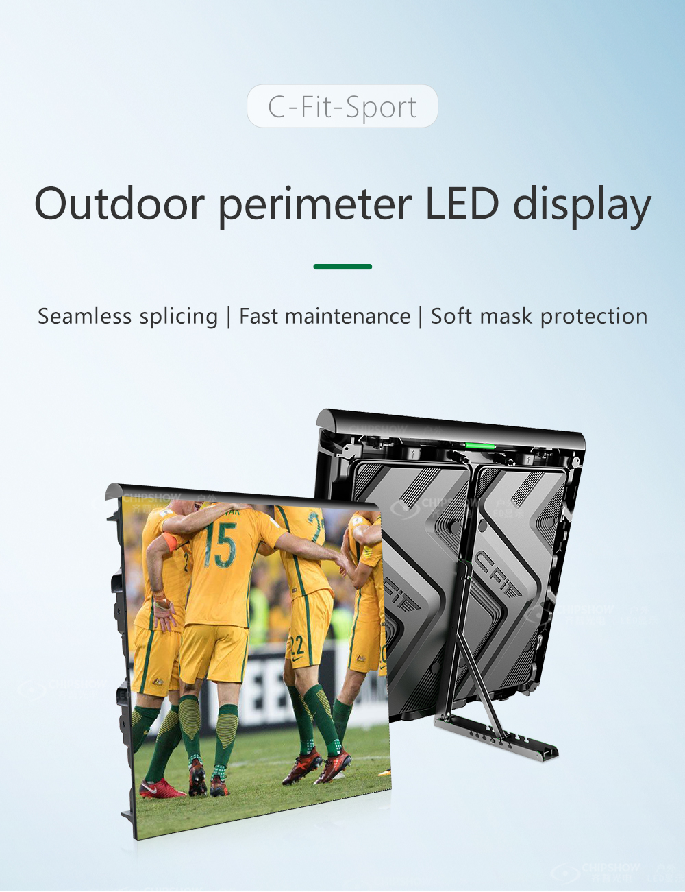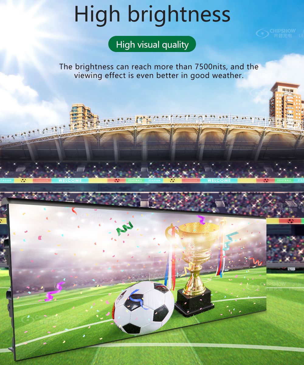 O display LED P8, P10 C-Fit-Sport adota tecnologia de substituição virtual. Anúncios virtuais poderiam ser transmitidos para diferentes países, em vez dos anúncios reais nos estádios.