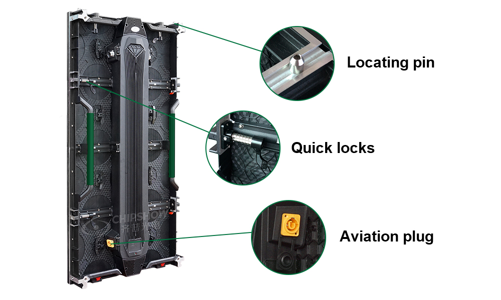 A série C-lite é um tipo de tela de LED para locação com excelente custo-benefício para diversas atividades; os gabinetes de alumínio fundido com travas rápidas e conectores de cabo práticos ajudarão os usuários a instalar e desmontar de forma rápida e fácil. Além disso, você também pode adicionar travas de escala para criar uma tela de LED curva.
