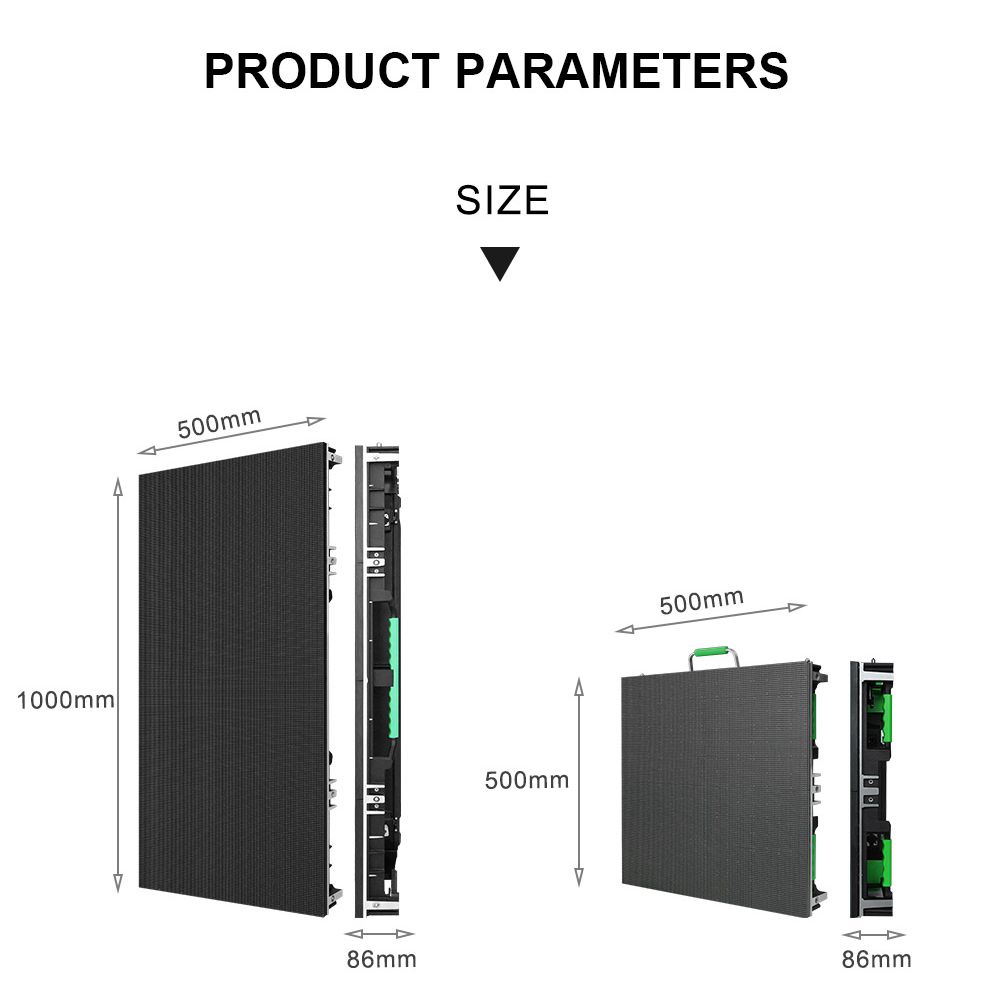 Recursos do módulo : 1, fácil: design modular, fácil montagem e manutenção. 2, tamanho do módulo: 250*250mm, superfície lisa, lacuna do módulo pequena, alta precisão Recursos do gabinete : ● Luz:Tamanho do gabinete:500*500*86mm, Peso: 8,5kg/pc. ● Fino: Design em alumínio fundido, alta precisão, espessura de apenas 86 mm. ● Rápido: Fechaduras rápidas, fáceis de montar e desmontar. ● Compatibilidade:Tamanho de pixel disponível para P2.6,P3, P3.91,P4, P5, P6. ● Baixo:Excelente design de resfriamento, sem necessidade de ventiladores ou ar-condicionado silencioso, baixo consumo de energia, econômico.