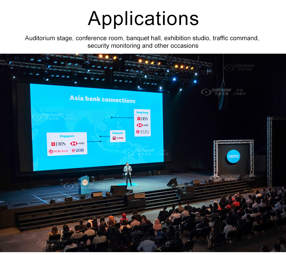 7 Amplas aplicações: a série C-Max COB pode ser aplicada em vários cenários internos, como salas de auditório, salas de conferência, salas de exposição, centros de CFTV e centros de comando de tráfego;