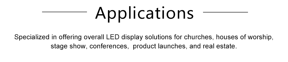 10. Campos de pixel universais internos e externos com P1.9 / 2.6 / 2.9 / 3.9 / 4.8 ets; Especializado em fornecer soluções gerais de display LED para eventos, conferências, palco, lançamentos de produtos e imóveis.