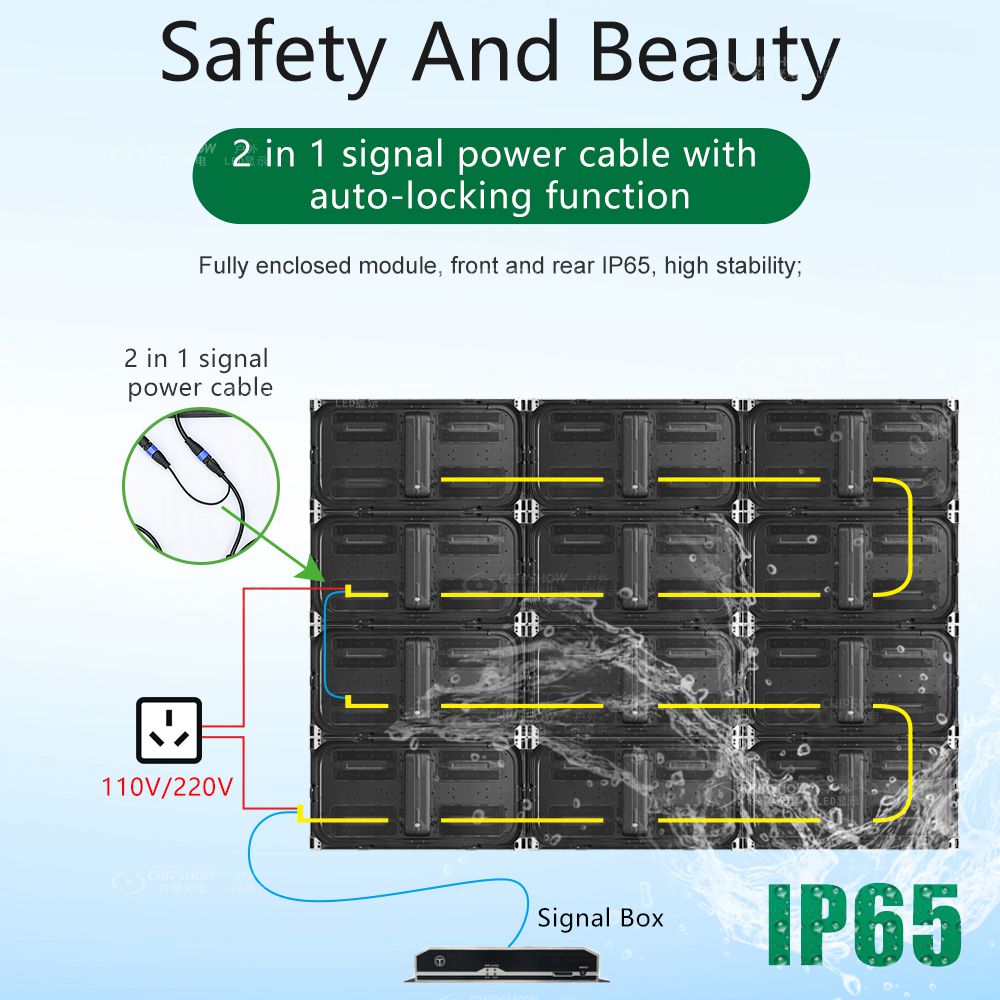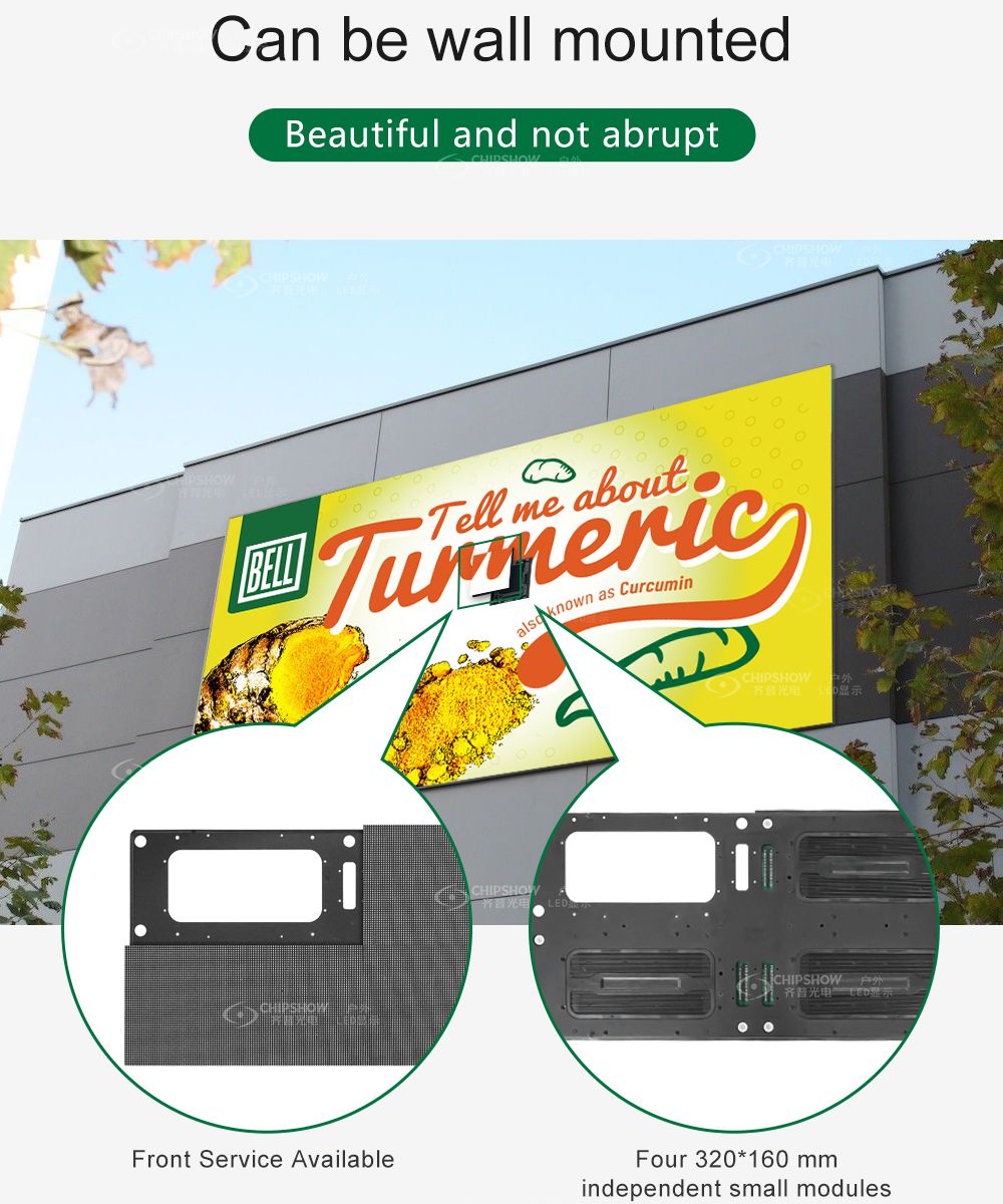 1 Módulos de LED totalmente fechados: cada módulo tem uma caixa de controle central e uma caixa de fonte de alimentação conectada a 4 modelos de unidades; 2 Design de suporte simples: os módulos requerem apenas um perfil de alumínio simples para concluir a instalação, economizando o custo de gabinetes e estrutura da estrutura; 3 Instalação na parede: os módulos, unidades de fonte de alimentação e sistemas de controle oferecem suporte ao serviço frontal, economizando muito espaço de instalação; 4 Autoexpansão: os módulos de grande porte (tamanho: 640*320 mm) podem ser emendados perfeitamente devido à sua excelente planura; você pode construir rapidamente telas com tamanhos diferentes; 5 Conexão rápida de tela: os módulos adotam cabos de alimentação de sinal 2 em 1 para conveniência de conexão e instalação rápidas; além disso, a fiação também é relativamente organizada; 6 Ultra leve, ultrafino: o peso de um gabinete inteiro é de apenas 23 KG/£; portanto, os custos de transporte podem ser economizados; 7 Proteção de alto nível: os módulos totalmente fechados com classificação IP65 garantem que as telas possam ser adaptadas a diversas condições externas; 8 Solução de exibição abrangente: as telas são especialmente adequadas para publicidade externa em diferentes cenários (por exemplo, shopping center, beira de estrada, cabeçalho de porta e vitrine);