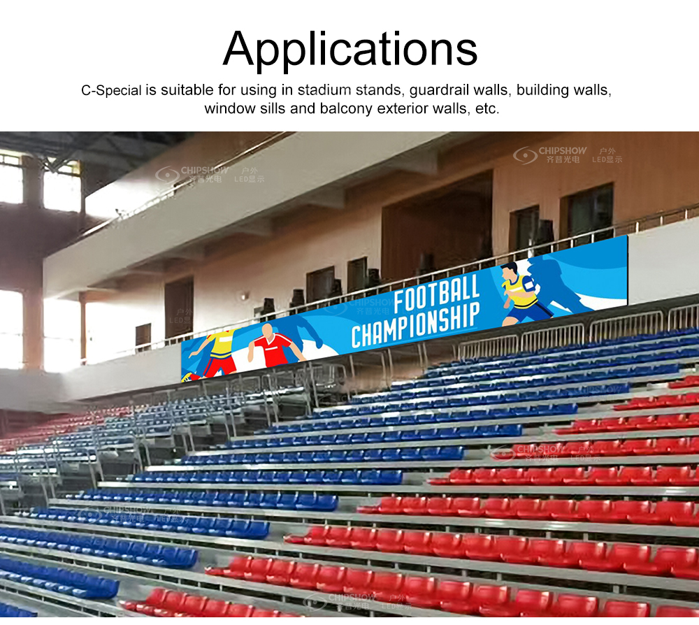 6 A série de estádios especiais C é particularmente usada como uma soluç、o de exibiç、o para paredes do estádio e fica em torno dos estádios;