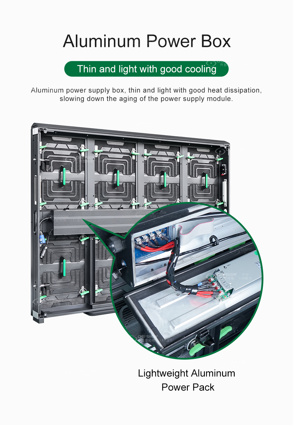 6 Em comparação com telas LED convencionais, a série Chipshow C-Sport economiza energia – cerca de 1/3 do consumo de energia pode ser economizado; isto reduz enormemente o custo operacional;