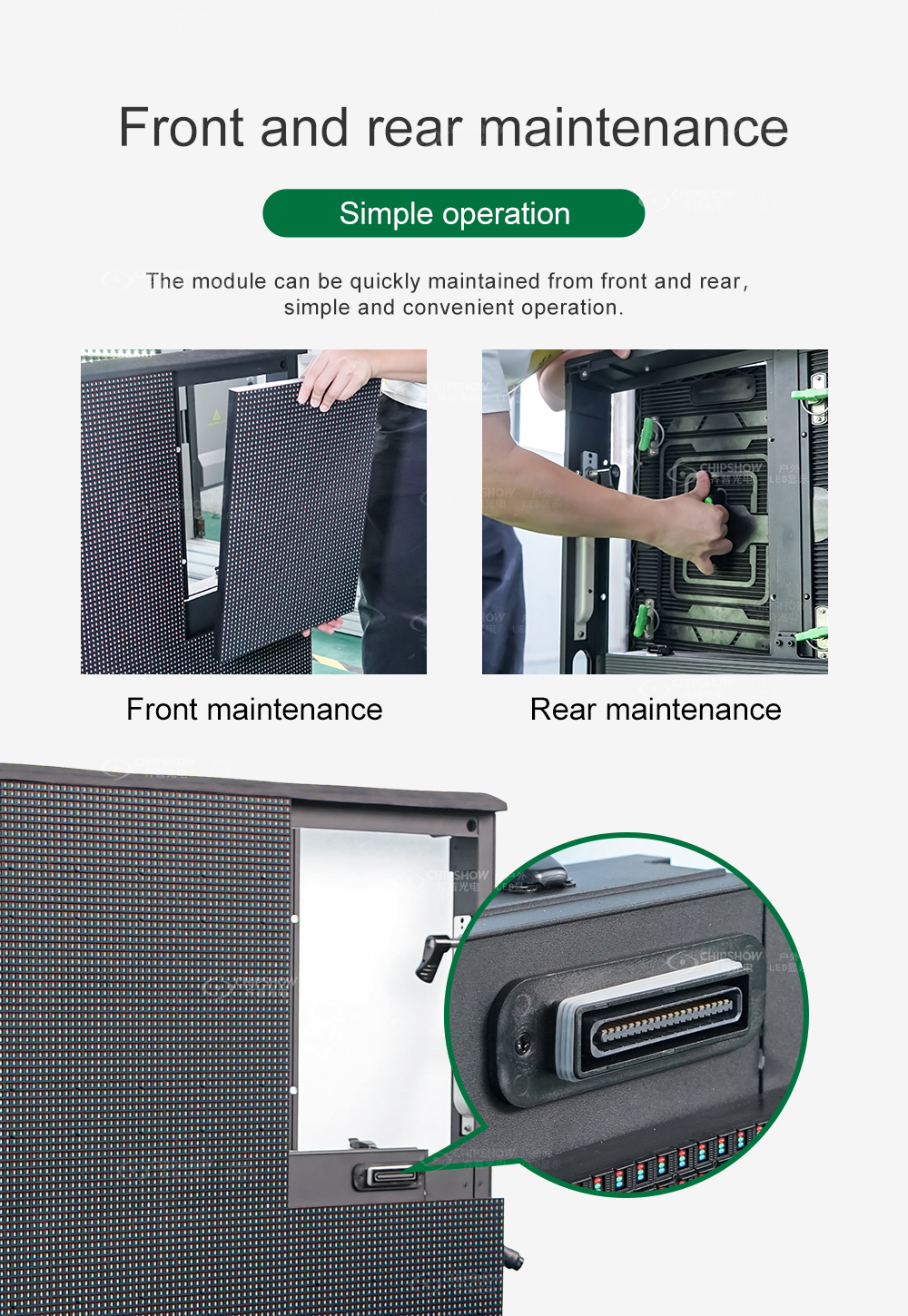 1 Adote o método de instalaç、o plug-pull: todo gabinete vem com trilhos-guia e pode ser rapidamente conectado e retirado; Isso simplifica o processo de desmontagem e manutenç、o; 2 O gabinete é feito de perfis de alumínio de alta precis、o; Isso garante a boa planicidade da tela; 3 É aconselhável adotar o método de instalaç、o montado na parede; Cada módulo pode ser mantido na frente e na traseira; Quando você alinha todos os módulos em uma linha reta, a tela parece arrumada; 4 Alta confiabilidade: os módulos totalmente fechados mais os componentes do plug-in IP65 garantem a execuç、o normal da tela em locais ao ar livre; 5 O gabinete de liga ultra-leve e de Ultra Light salvará bastante o custo de transporte e instalaç、o; 6 A série de estádios especiais C é particularmente usada como uma soluç、o de exibiç、o para paredes do estádio e fica em torno dos estádios;