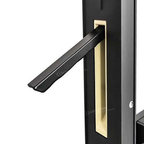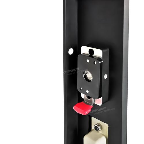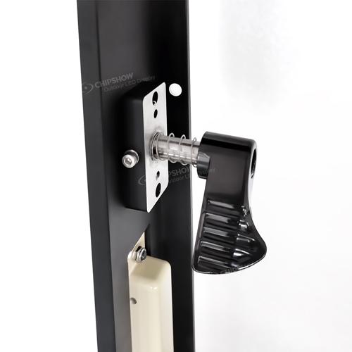 1 Cada gabinete é equipado com travas rápidas esquerda e direita e um suporte giratório ajustável de 90 graus para conveniência de montagem rápida do display perimetral;