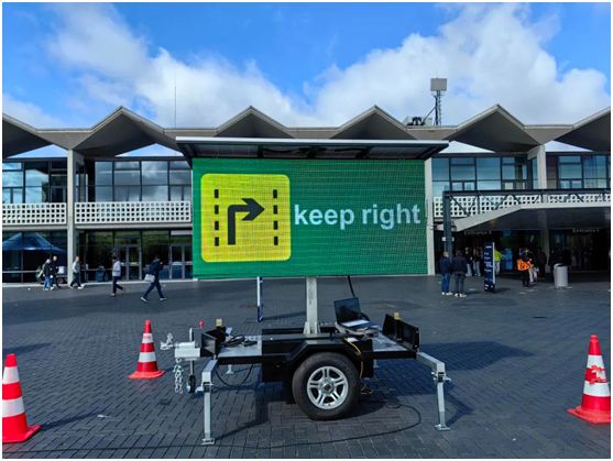 Outra exposição de destaque é a nossa tela solar para carro; esta tela combina alta mobilidade, bateria de longa duração, alto brilho e alta estabilidade, tornando-a muito adequada para operações de trânsito. Esta tela usa fonte de alimentação de baixa tensão e está equipada com um conjunto fotovoltaico de alta potência e uma bateria de grande capacidade. Pode atingir alta eficiência e economia de energia e pode operar exclusivamente com energia solar durante todo o ano.