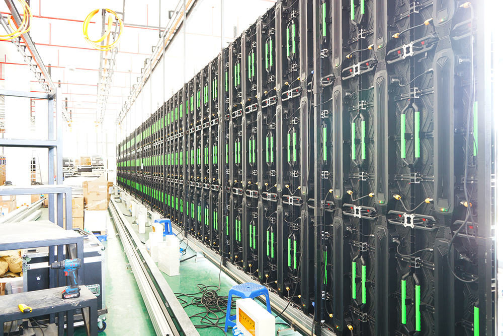 A oficina de envelhecimento no primeiro andar tem 1.500 metros quadrados, seis linhas de envelhecimento automático de 32 * 5 metros, pode atingir uma capacidade de produção de 600 metros quadrados de tela LED com densidade de pixel entre P2 ~ P31.25 por dia e 6.000 metros quadrados por mês; com equipamento de calibração totalmente inteligente e sala de calibração, equipamento automático de chuva, equipamento de vibração, equipamento de teste de alta e baixa temperatura, etc., para garantir a qualidade do produto.