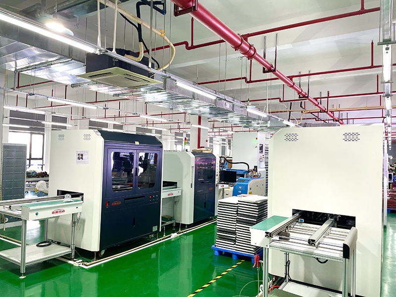 A oficina de pré-instalação de 750 metros quadrados no segundo andar tem 5 linhas de enchimento de cola online totalmente automatizadas, 1 linha de enchimento de cola automática não online, 2 linhas de soldagem traseira, 4 linhas de parafusadeiras automáticas online de alta velocidade, 8 parafusos não online linhas de máquinas, capacidade de produção diária de 100 metros quadrados, capacidade de produção mensal é de cerca de 3000 metros quadrados;