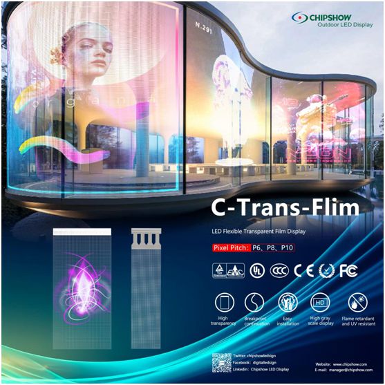 Chipshow também tem sua própria série de telas LED transparentes/holográficas. A tela holográfica LED é muito adequada para exibição comercial.