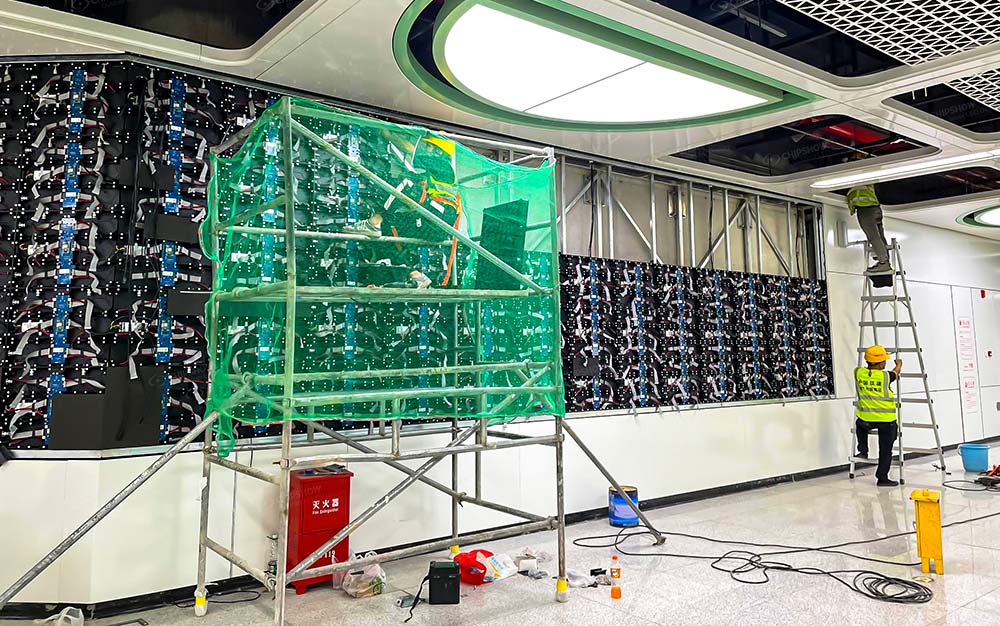 P1.58 Projeto de tela de LED ultratransparente de espaçamento pequeno na estação de metrô de Shenzhen, China